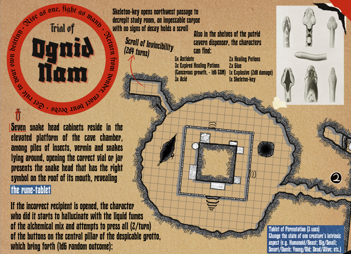 - A five room dungeon, submitted for the Appendix N Jam, with a different challenge in each main room which can be completed in any order the players choose to do so.