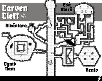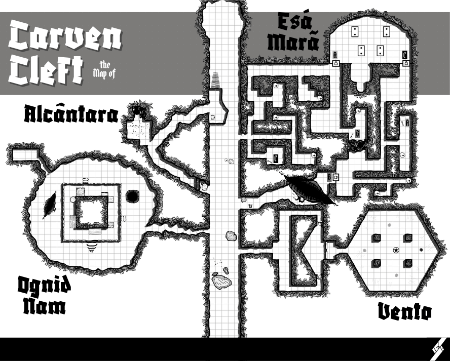 A mountain split by retribution and guarded by gallantry. A fate undone by hubris, curiosity and disdain. As the characters approach this barren land of sand, dust and ash, a gentle figure advises against the meddling of adventure inside the ruins of Carven Cleft, the burial site of the ancient Rune-Lords.